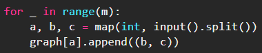 graph[a].append((b, c))