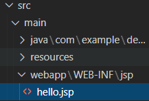 src/main 폴더 내에 webapp/WEB-INF/jsp 폴더 생성 후 hello.jsp 파일 생성