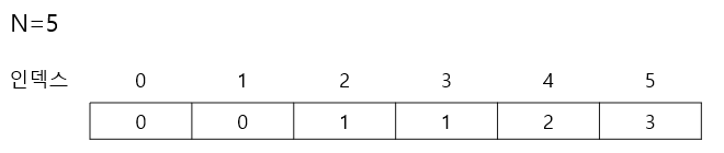 그러므로 인덱스 0과 1을 제외하고 직전 인덱스의 값+1을 해준다
