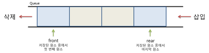 선입선출 구조로 한쪽에서는 입력이, 한쪽에서는 출력이 일어나게 된다. 대기줄에 비유된다.